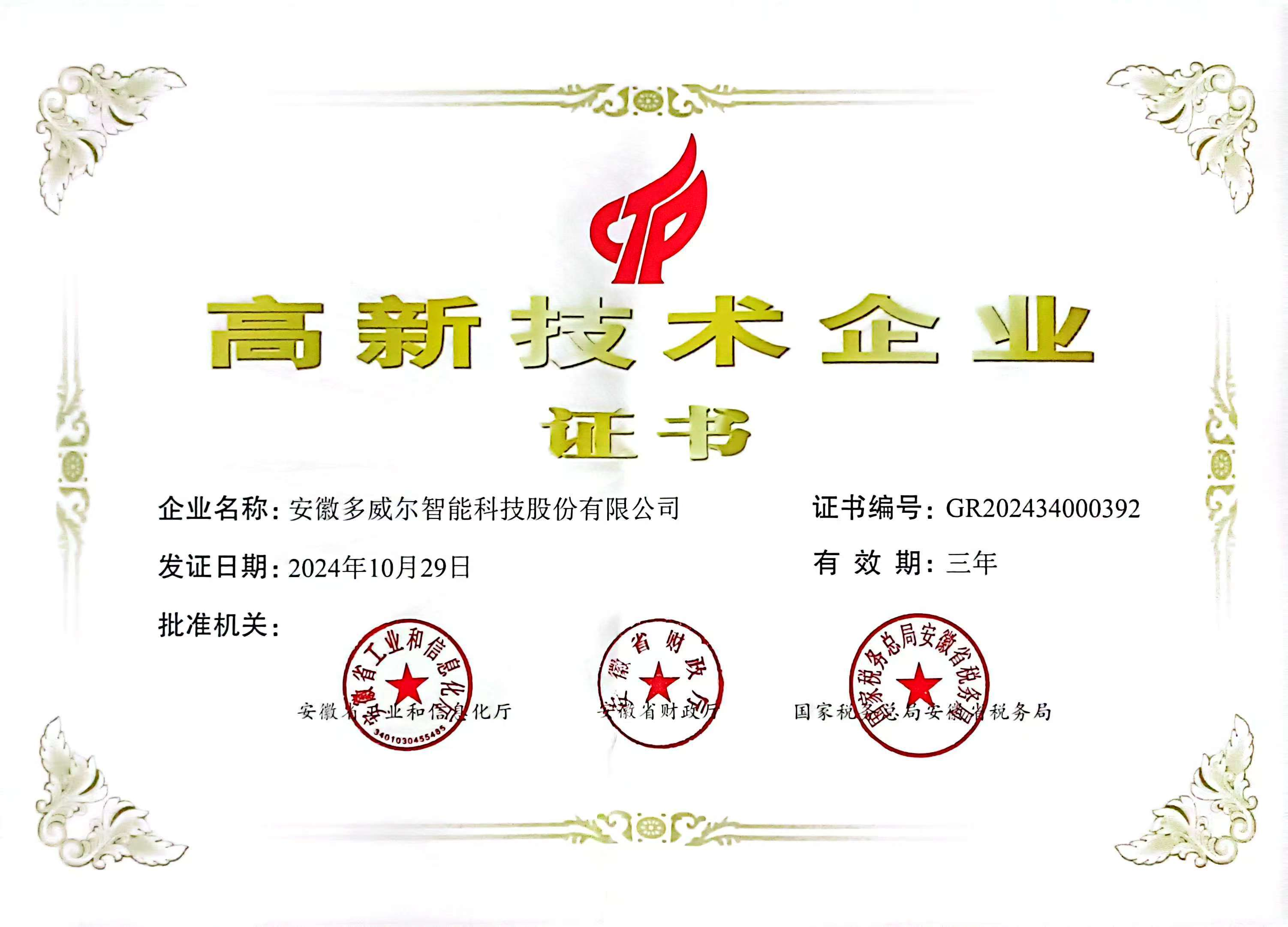 創(chuàng)新,是多威爾發(fā)展的靈魂;技術(shù),是我們立足的根本。近日,我們迎來(lái)了一個(gè)振奮人心的消息:安徽多威爾智能科技股份有限公司成功通過(guò)了國(guó)家高創(chuàng)新技術(shù)企業(yè)的復(fù)審認(rèn)定!